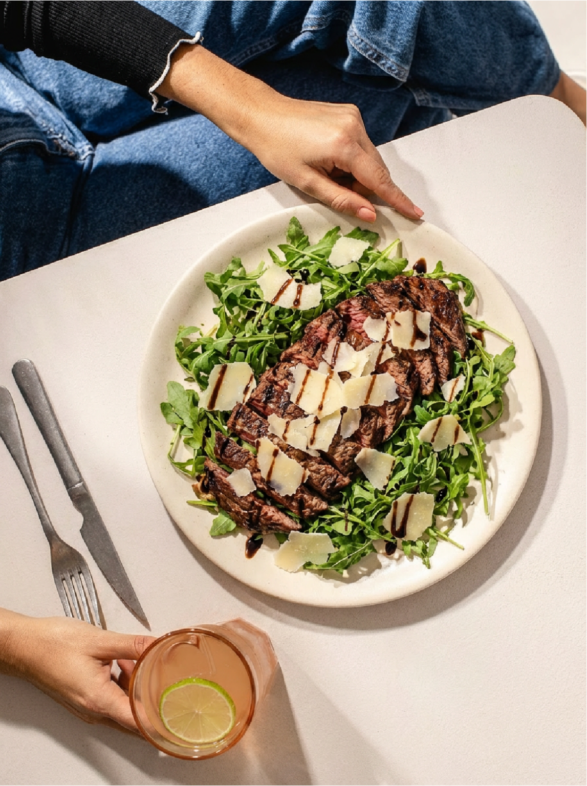 Nuestros cortes de carne no son congelados industriales; usamos producto fresco que cocinamos al momento con técnicas de alta cocina adaptadas a la velocidad que tu agenda exige.